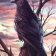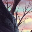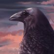 Od dawna obserwuję kruczą samiczkę imieniem Fable, która mieszka w Szkocji z Amy i jej rodziną*. To dzięki filmom Amy dowiedziałam się dużo o krukach i o tym, jakie są wyjątkowe, inteligentne i uzdolnione. Kiedy planowałam trzeci obraz z serii plakatów, wiedziałam, że chcę, aby przedstawiał on Fable. Napisałam wiadomość do Amy, opisałam jej swój pomysł i poprosiłam o pozwolenie, by narysować jej kruczą przyjaciółkę. Zgodziła się! Byłam niezwykle szczęśliwa, bo nie potrafiłam sobie wyobrazić żadnego innego zwierzęcia, które lepiej symbolizowałoby wolność i piękno dzikiej przyrody. Wykorzystałam zrzuty ekranu z filmów Amy, by odpowiednio odwzorować układ piór i budowę ciała Fable. Postanowiłam narysować ją na tle obłoków perłowych, by to zestawienie podkreśliło niezwykłość natury.